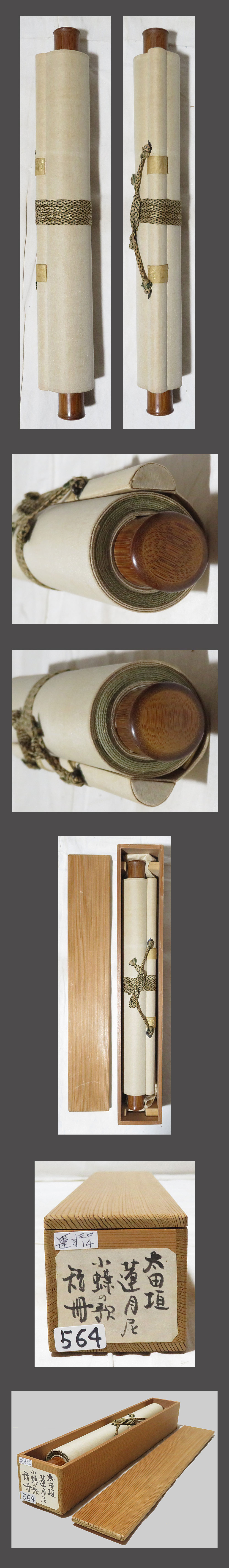 ・掛軸の軸先ですが、細心の注意を払って梱包しておりますが、 配送中の振動・気温・経年劣化等で外れてしまうことがあります。 軸先の外れは、破損ではございませんので、返品の対象にはなりません。 大変お手数ですが、お客様ご自身での修復をお願い致します。 ・添付写真の画像と説明文でご理解頂ける方、ご入札を宜しくお願い致します。 ・添付写真の画像は撮影の光度により、現物と若干の色合いの相違が生じる事があります。 ・添付写真の画像は受取完了のご連絡を頂いた後に速やかに消去しますのでご了承下さい。 ・土・日・祝日はお休みさせて頂きますので、商品発送は、月曜日以降になります。 ・祝日の場合は、翌日の平日以降の発送になります。 ・土・日・祝日は、メールの返信が若干遅れる事がございます。どうか、ご了承下さい。 ・時間的に余裕がない場合などでお答えが出来ない事も多々有ります。 ご不明な点は落札日前日までに早めにご質問下さい。 ・商品トラブルがあった場合は、直ちにご連絡下さい。 お取引に付きましては迅速・丁寧に対応させて頂きます。 ・落札後、できるだけ2日以内に連絡(返信)を頂ける方、 5日以内にご入金できる方の御入札を御願い致します。 ・新規の方や評価の総評が悪い方は当方の判断にて、入札取り消しを行う場合がございます。 ・お取引に付きましては、迅速、丁寧に対応致しますのでどうぞ、宜しくお願い致します。 ・古美術品や古物や古書画の出品が多いため、神経質な方がご入札される場合は、 ご自身が納得の行く価格でご入札ください。 ・万一、ヤフーのシステム障害により、公正なオークションができなかったまま終了し、 落札者様にご落札された場合は、当方より取引ナビで取引中止のご連絡を致します。 その時は、どうか、ご了承をお願い致します。 ・終了当日・直前の入札の取り消しは、 トラブルの原因となりますのでご遠慮お願い致します。 ・入札後の取り消し(キャンセル)は行っておりません。 ・落札後のキャンセル・返品はお断りしてます。 入札前によくご確認頂き、間違いのないようにご注意下さい。 |
