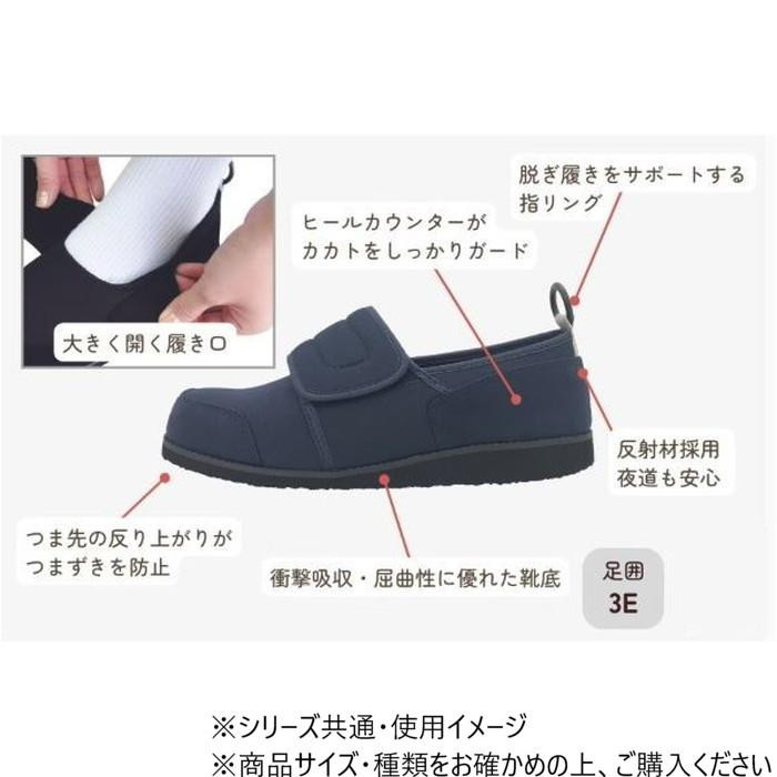 | ストレッチ性のあるゴムスポンジで、やさしい履き心地になっております。大きく開く履き口で脱ぎ履きが楽です。面ファスナーで容易に着脱できます。かかとには着用をサポートする指リングが付いております。 |