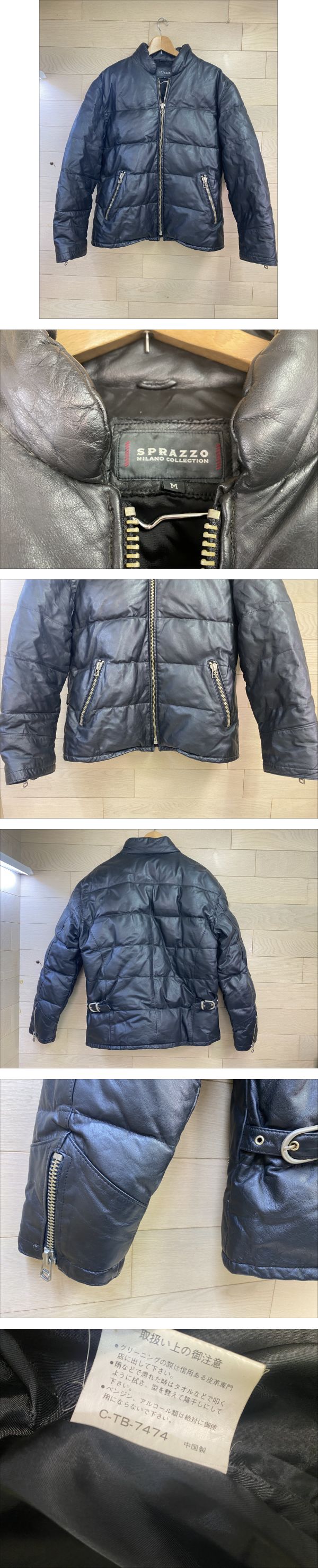 SPRAZZO MILANO COLLECTION 牛革 ダウンジャケット M ブラック 本革 レザーダウン メンズ 防寒 アウター スプラッツォ ミラノ コレクション 收藏