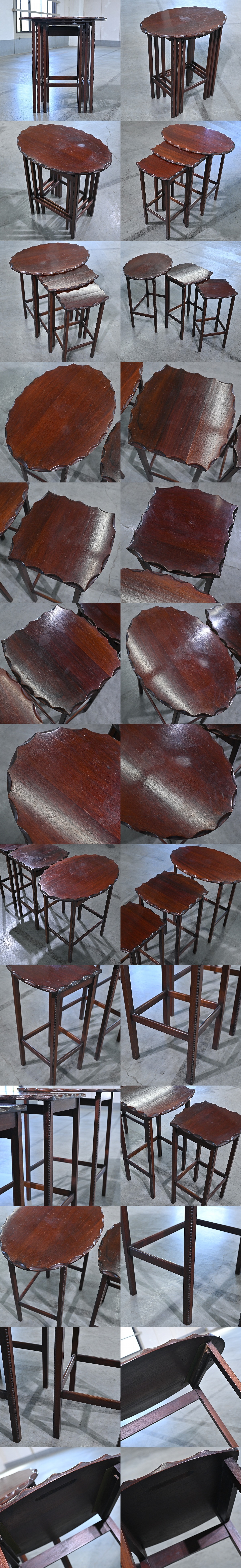 イギリスビンテージ ネストテーブル マホガニー無垢材 英国 机 サイド 飾り台 クラシック ジョージアンスタイル オーバル 長方形 收藏