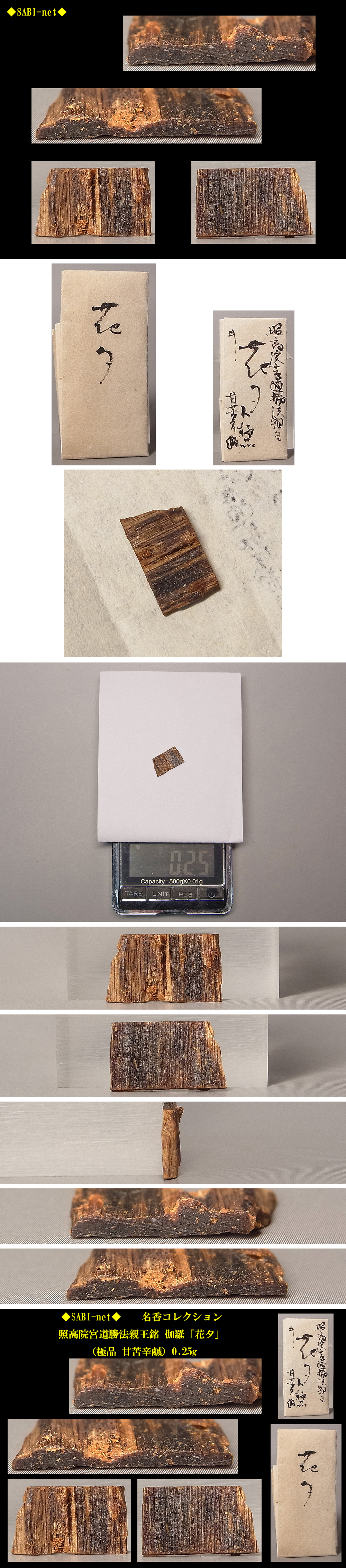 ◆SABI◆ 照高院宮道勝法親王銘 伽羅「花夕」(極品 甘苦辛鹹)0.25g 名香コレクション◆志野流 香道 香木 沈香 香道具 香炉 收藏