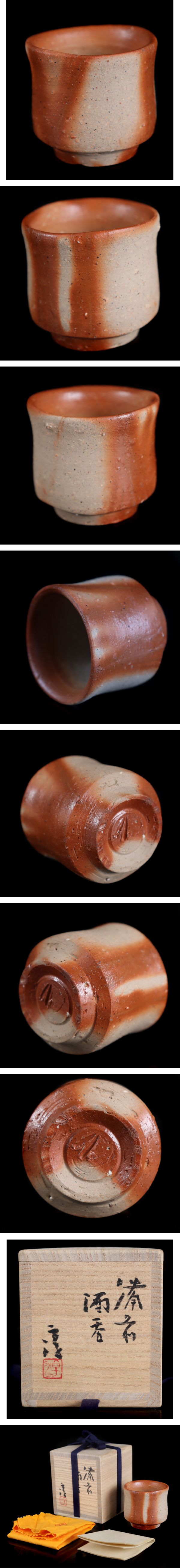 人間国宝 備前 伊勢崎淳 緋襷ぐい呑 共箱 本物保証(酒杯酒盃)F435 收藏