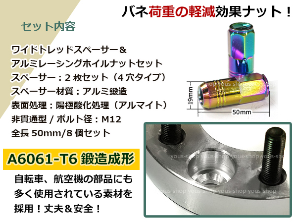 ノート E12 ワイドスペーサー 4H PCD100/M12 P1.25 15mm 2枚 レーシングナット P1.25 50mm 非貫通型 焼き 收藏