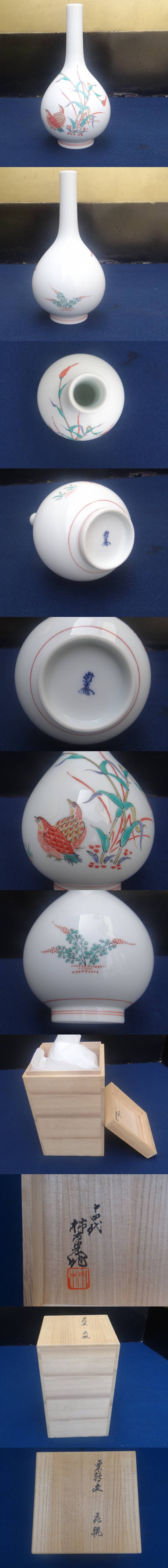 美品です。12代『柿右衛門』 岩牡丹絵 花瓶 收藏