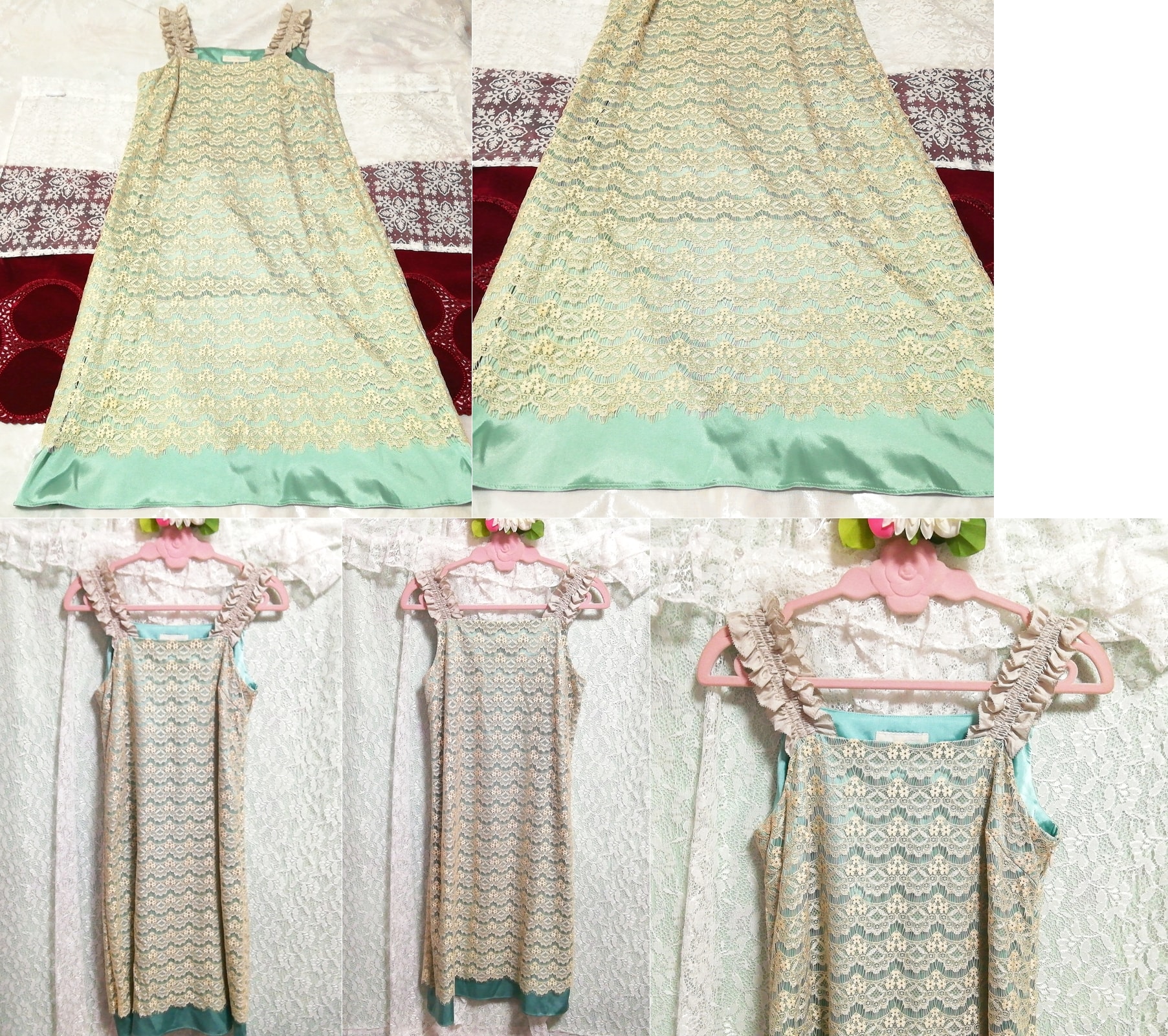 緑レースサテンスカート ネグリジェ ナイトウェア ノースリーブワンピースドレス Green lace satin skirt negligee nightwear dress 收藏