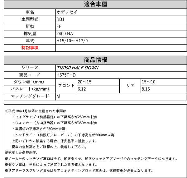 [RS-R_Ti2000 HALF DOWN]RB1 オデッセイ_M(2WD_2400 NA_H15/10~H17/9)用車検対応ダウンサス[H675THD] 收藏
