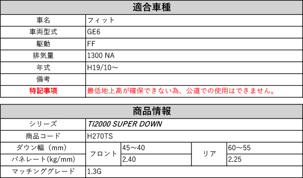 [RS-R_Ti2000 SUPER DOWN]GE6 フィット_1.3G(2WD_1300 NA_H19/10~)用競技専用ダウンサス[H270TS] 收藏