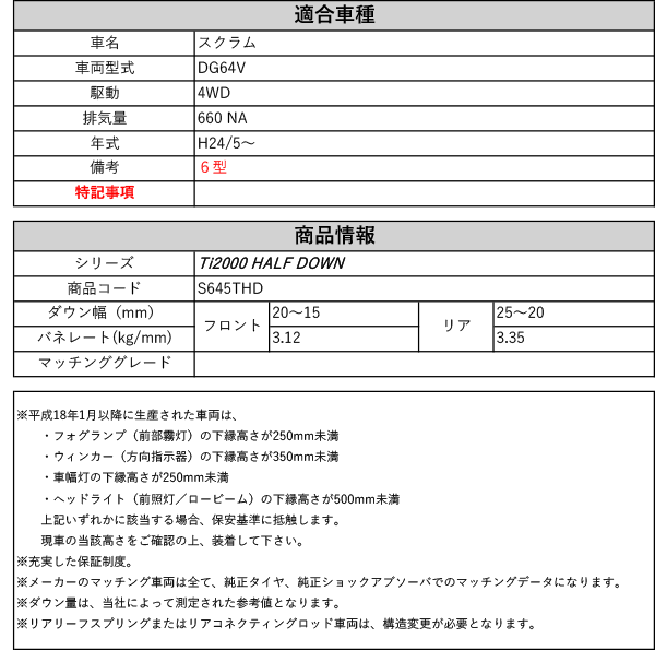 [RS-R_Ti2000 HALF DOWN]DG64V スクラム_PC_6型(4WD_660 NA_H24/5~)用車検対応ダウンサス[S645THD] 收藏
