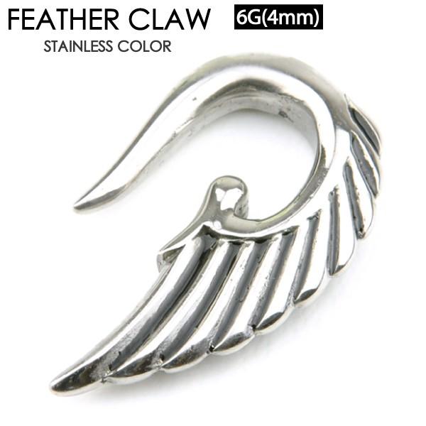 クロー フェザー 羽 6G(4mm) サージカルステンレス316L ボディピアス クロウ ユニセックス デザイン ひっかけ イヤーロブ 6ゲージ 4ミリ┃ 收藏
