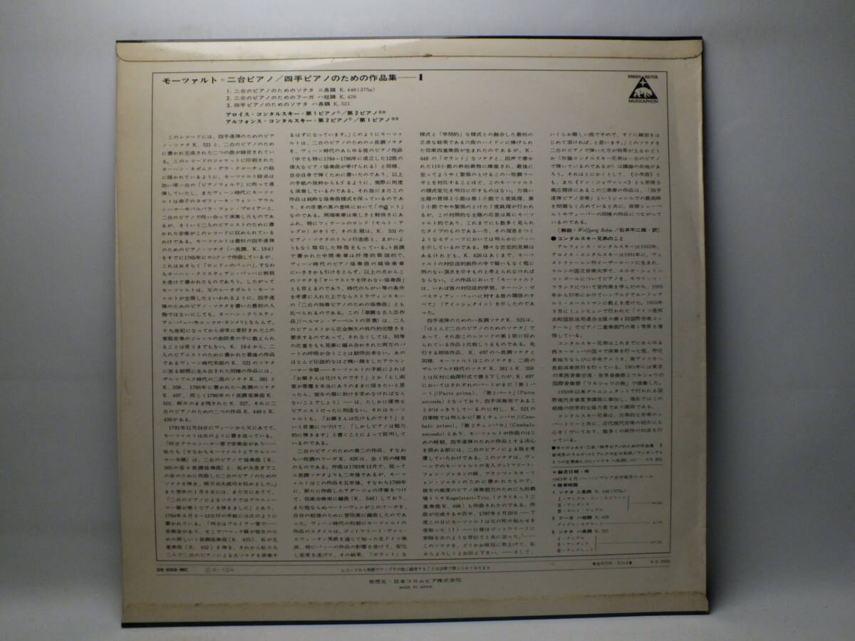 | LP OS 889-MC 【ピアノ】アロイス アルフォンス・コンタルスキー モーツァルト 2台のピアノのための作品集 【8商品以上同梱で送料無料】2501 | |||||