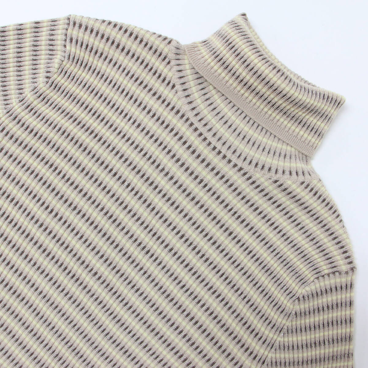 【美品】ADORE アドーア ニット ベージュ イエロー サイズ:38(M) / ダブルリブ タートル ニット / 長袖 ボーダー ハイゲージ ウール 收藏