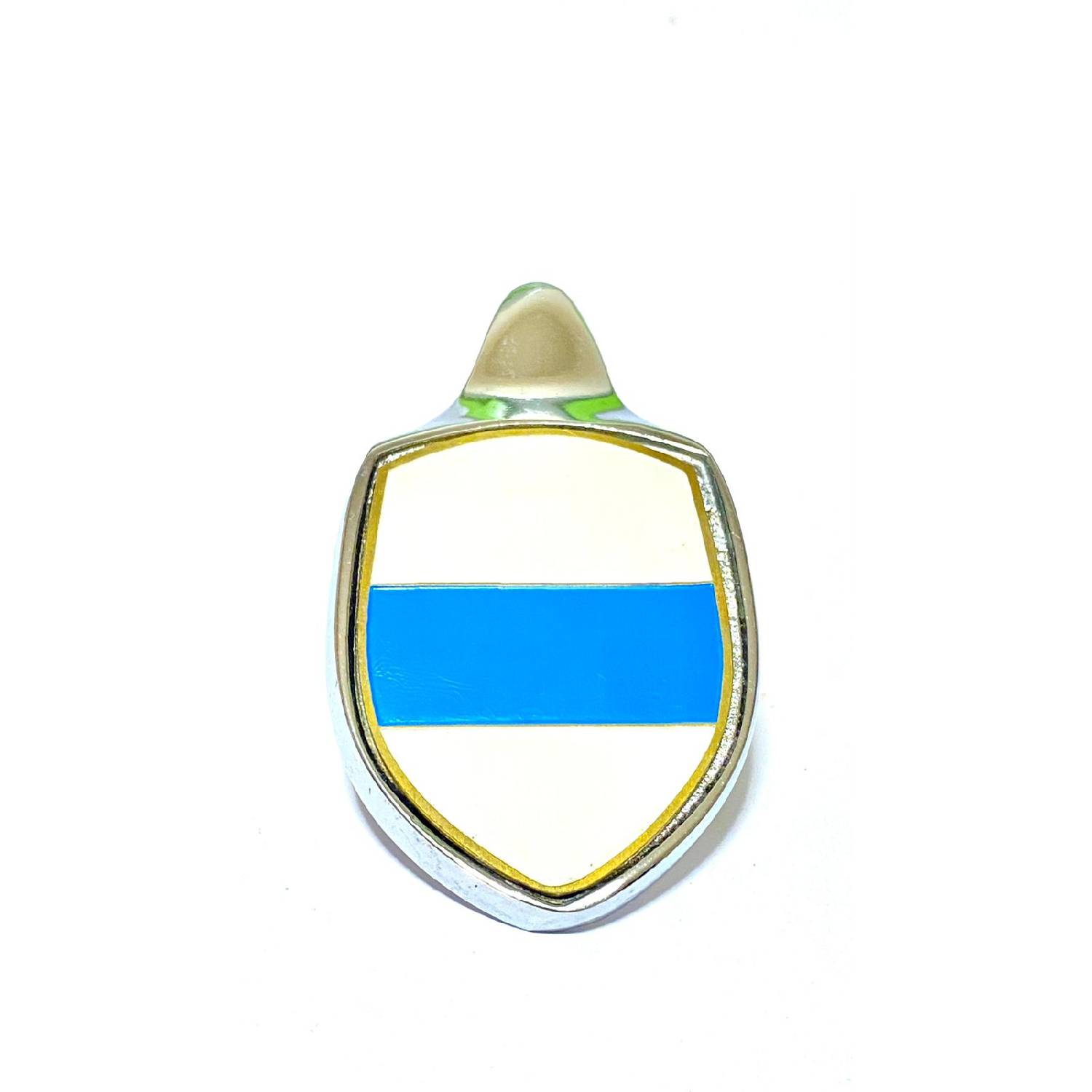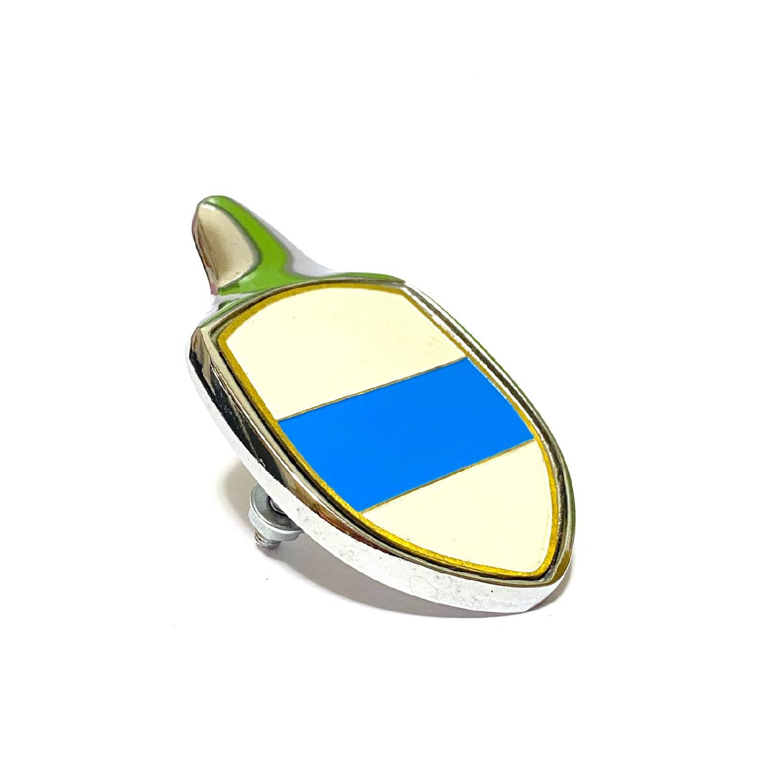 VW ZUG ツーク 国章 ブルー ストライプ ホワイト 白 青 フロントフード バッジ クレスト メダリオン エンブレム クロームメッキ スチール製 ベース プレート付き ヴォルフスブルク フォルクスワーゲン ビートル T1 年 1951年~1963年式