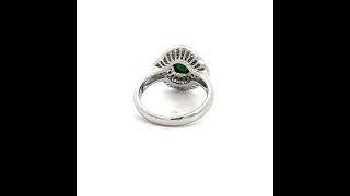 ■コメント | 三越の、グロッシュラーライトガーネットの深いグリーンが、シックな輝きをみせるリングです 周りのキラキラと煌めくダイヤモンドが、クラシカルで品のある印象を漂わせます |