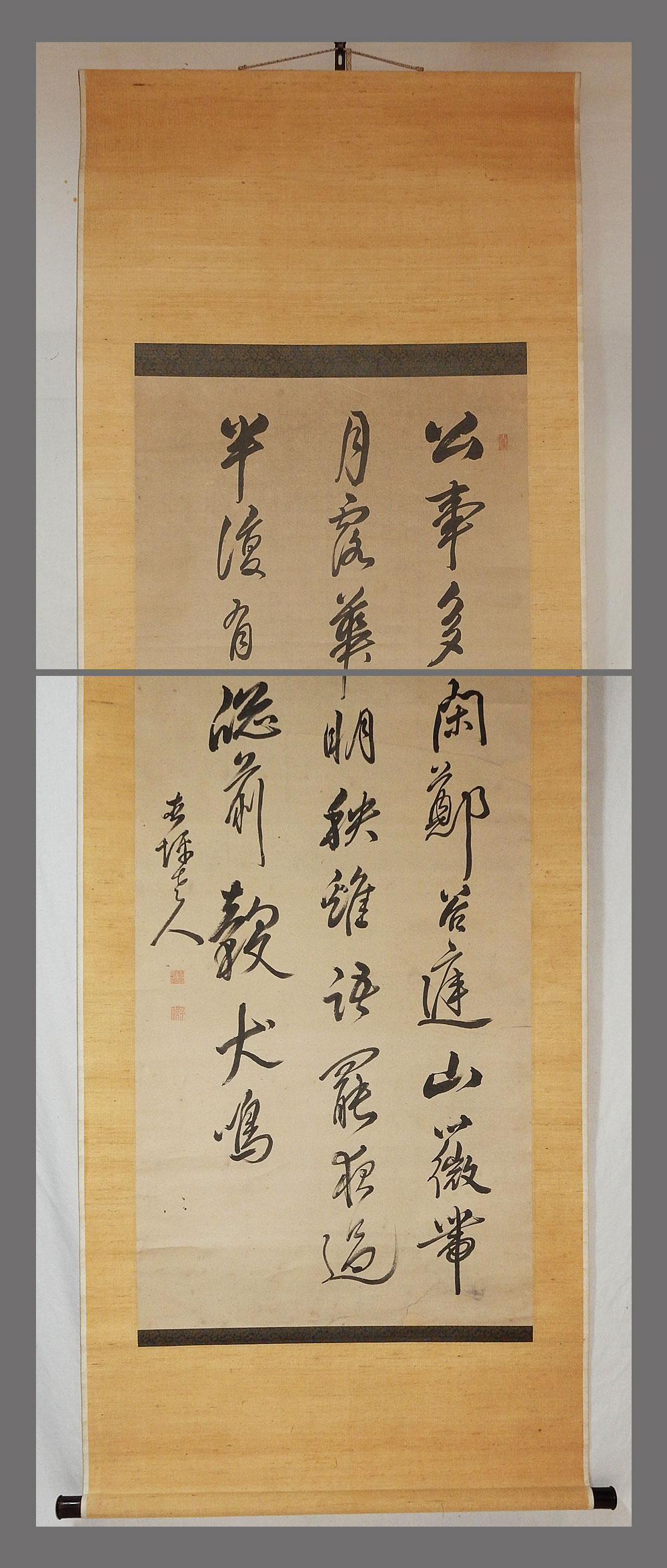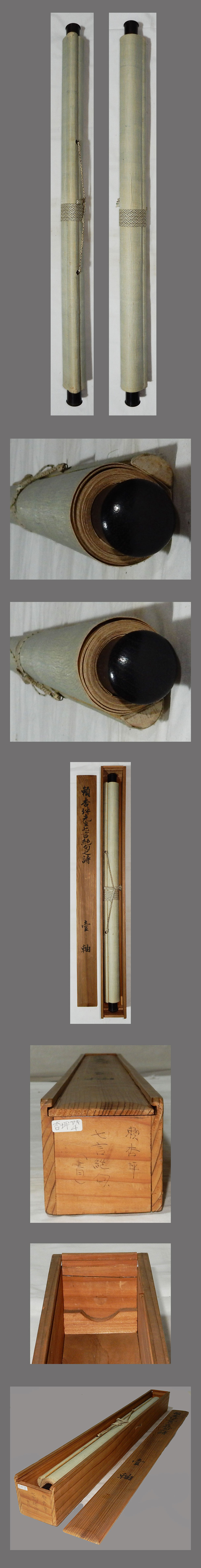 ・掛軸の軸先ですが、細心の注意を払って梱包しておりますが、 配送中の振動・気温・経年劣化等で外れてしまうことがあります。 軸先の外れは、破損ではございませんので、返品の対象にはなりません。 大変お手数ですが、お客様ご自身での修復をお願い致します。 ・添付写真の画像と説明文でご理解頂ける方、ご入札を宜しくお願い致します。 ・添付写真の画像は撮影の光度により、現物と若干の色合いの相違が生じる事があります。 ・添付写真の画像は受取完了のご連絡を頂いた後に速やかに消去しますのでご了承下さい。 ・土・日・祝日はお休みさせて頂きますので、商品発送は、月曜日以降になります。 ・祝日の場合は、翌日の平日以降の発送になります。 ・土・日・祝日は、メールの返信が若干遅れる事がございます。どうか、ご了承下さい。 ・時間的に余裕がない場合などでお答えが出来ない事も多々有ります。 ご不明な点は落札日前日までに早めにご質問下さい。 ・商品トラブルがあった場合は、直ちにご連絡下さい。 お取引に付きましては迅速・丁寧に対応させて頂きます。 ・落札後、できるだけ2日以内に連絡(返信)を頂ける方、 5日以内にご入金できる方の御入札を御願い致します。 ・新規の方や評価の総評が悪い方は当方の判断にて、入札取り消しを行う場合がございます。 ・お取引に付きましては、迅速、丁寧に対応致しますのでどうぞ、宜しくお願い致します。 ・古美術品や古物や古書画の出品が多いため、神経質な方がご入札される場合は、 ご自身が納得の行く価格でご入札ください。 ・万一、ヤフーのシステム障害により、公正なオークションができなかったまま終了し、 落札者様にご落札された場合は、当方より取引ナビで取引中止のご連絡を致します。 その時は、どうか、ご了承をお願い致します。 ・終了当日・直前の入札の取り消しは、 トラブルの原因となりますのでご遠慮お願い致します。 ・入札後の取り消し(キャンセル)は行っておりません。 ・落札後のキャンセル・返品はお断りしてます。 入札前によくご確認頂き、間違いのないようにご注意下さい。 |