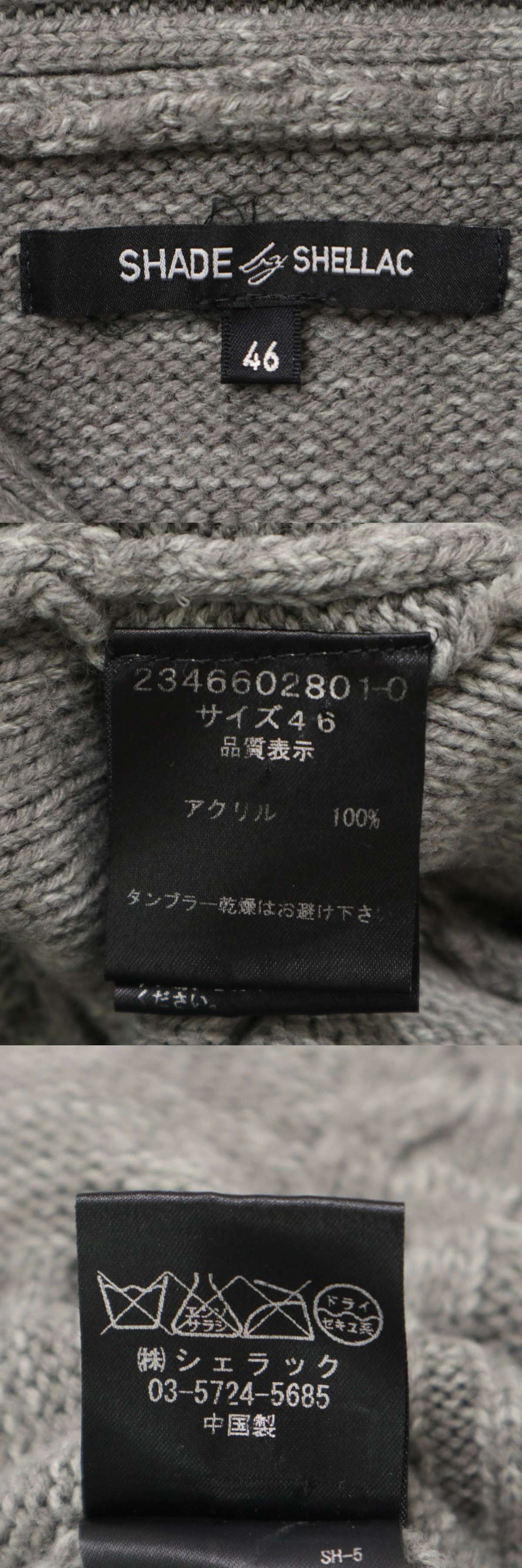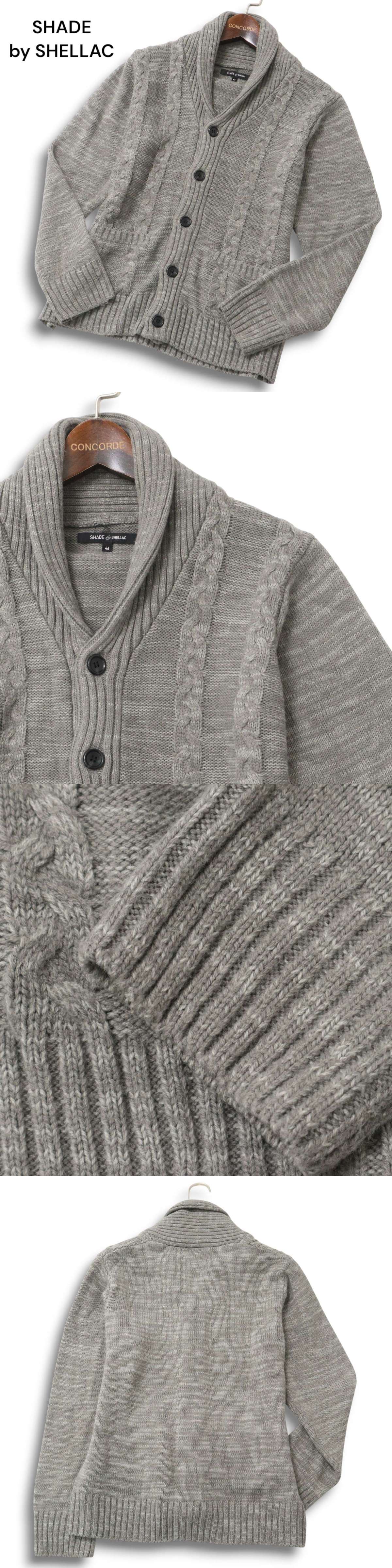 SHADE by SHELLAC シェラック 秋冬 ケーブル編み★ ショールカラー ニット カーディガン Sz.46 メンズ 灰 グレー 收藏