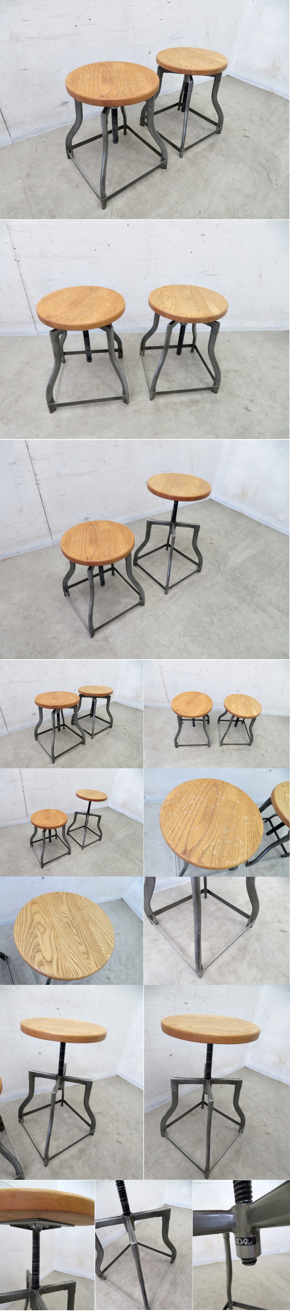 デザイナーと職人のコラボレーションが織り成す、 世界のデザイナーズ家具を取り揃えた【ADAL アダル】から、 インダストリアルなスツールのご紹介です。 ナチュラルな座面、インダストリアルな脚部の組み合わせが非常に美しい仕上がり。 ご自宅は勿論のこと、オフィスやカフェ、レストラン、公共施設などにも最適です。 大変おすすめですのでこの機会にぜひ!!! コンディション:中古のため写真のように使用感、傷、汚れはありますがその他は全体的に美品です。 サイズ横34センチ奥行き34センチ高さ44-64センチです。