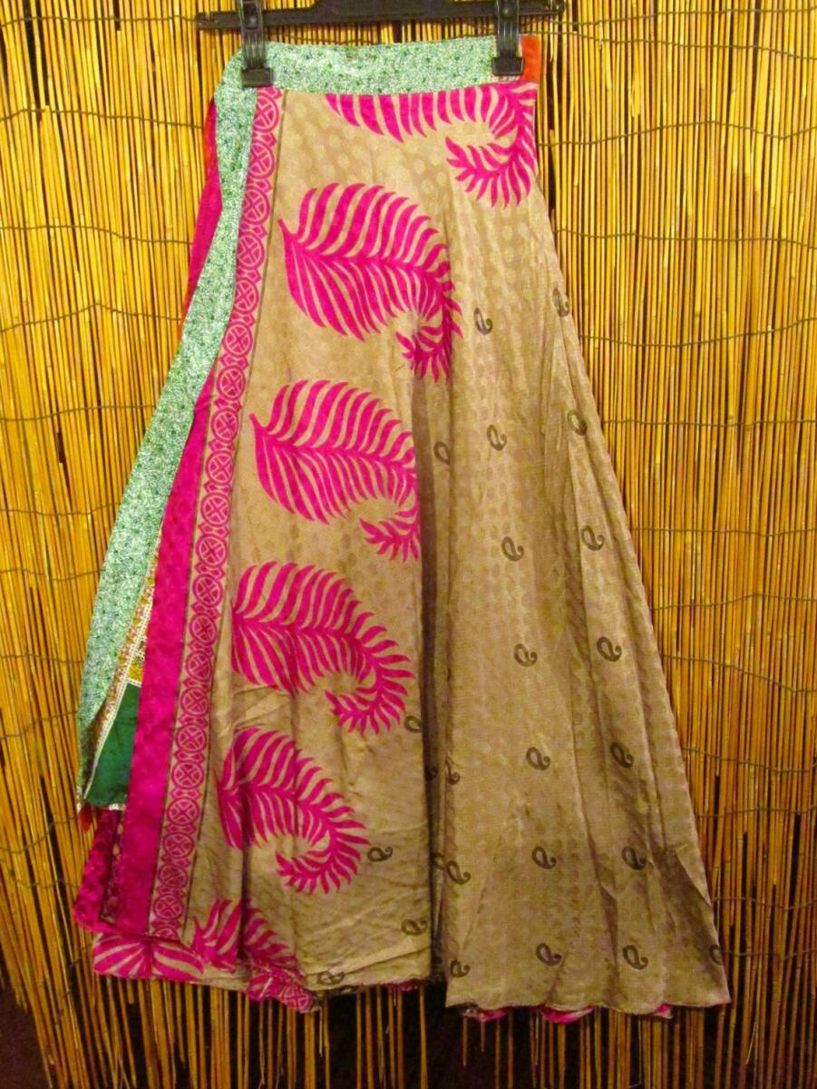 ⑪新品*サリー生地*ポリエステル素材*フリーサイズ*2WAY*二枚重ね*ロング丈*ラップスカート 收藏
