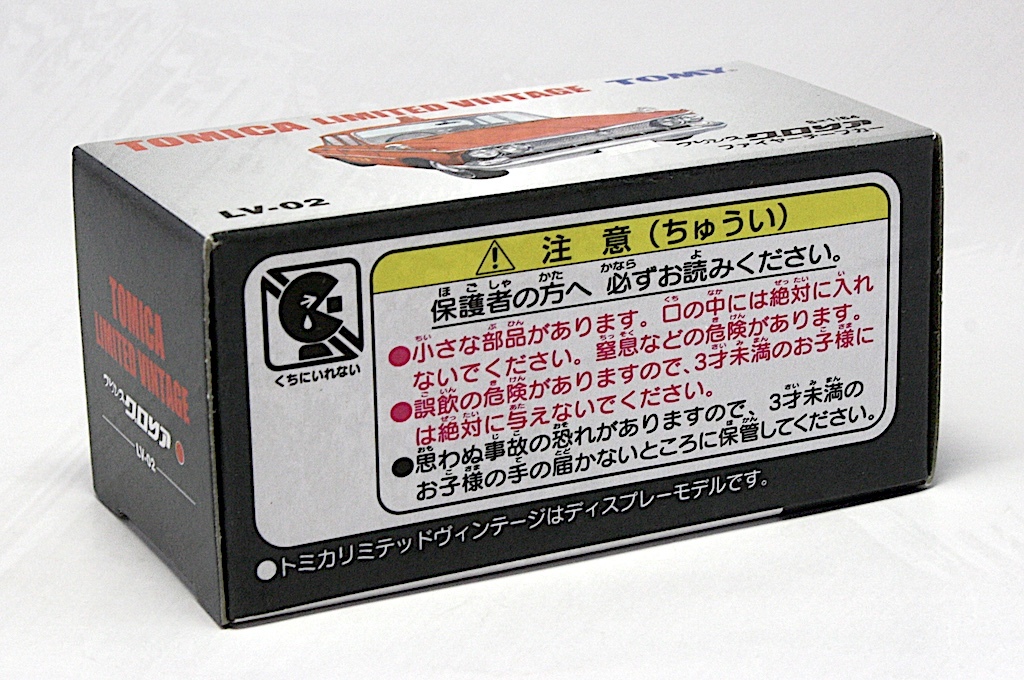 | トミカリミテッドヴィンテージ LV-02d プリンス グロリア ファイヤーチーフカー(東京消防庁) 未開封、未使用品。製造時からの塗装の不出来やタンポの欠けなど製造上の個体差、箱の初期擦れシワ、折れ、傷、汚れ等の傷みなどがある場合がありますので予めご了承下さい。写真では分りづらいキズ等がある場合もあります。ご理解の程宜しくお願い致します。 | |||