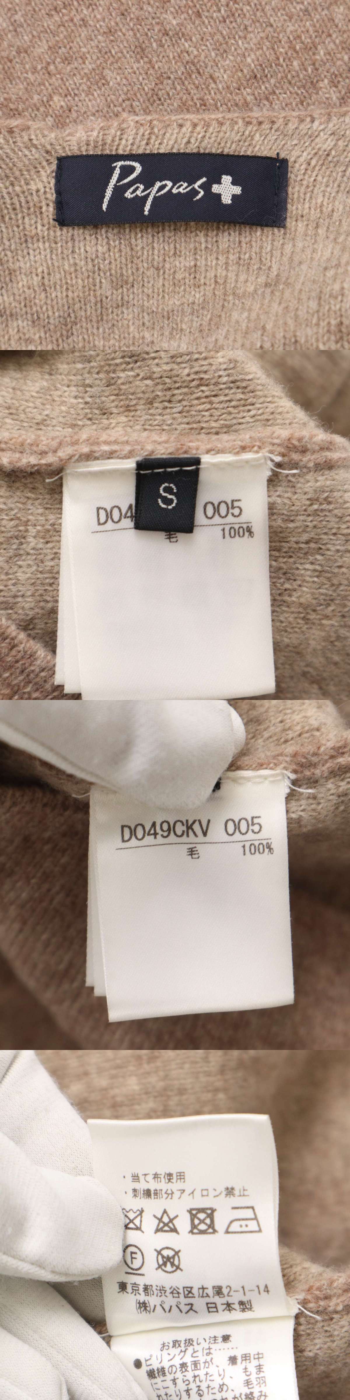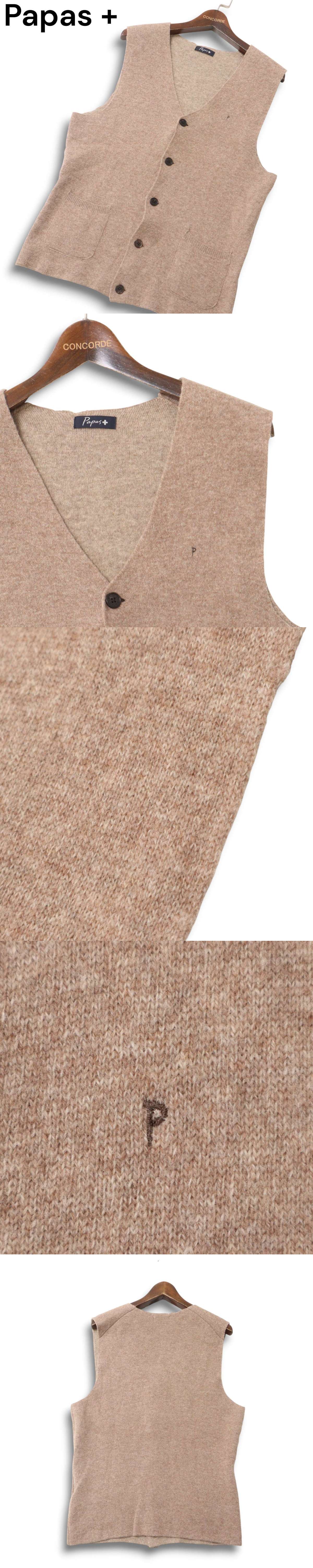 Papas + パパス プラス 秋冬 ウール100%★ Vネック ニット ベスト Sz.S メンズ 日本製 收藏