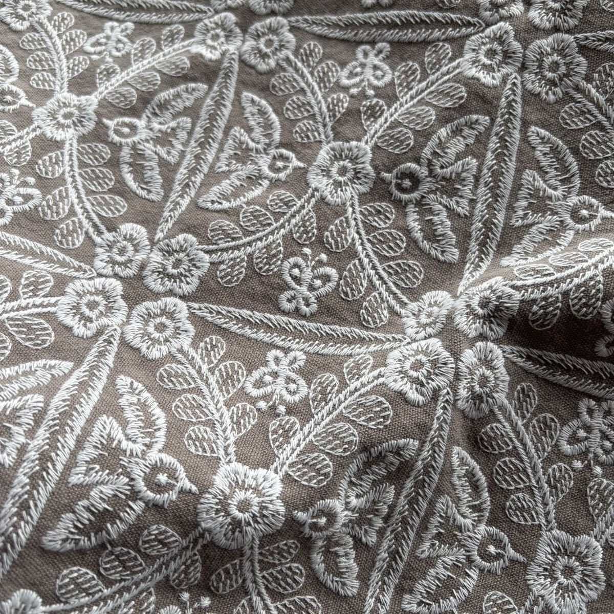 新色再入荷 上品なライトグレー&白刺繍コットンリネン地生地ハギレ布 收藏