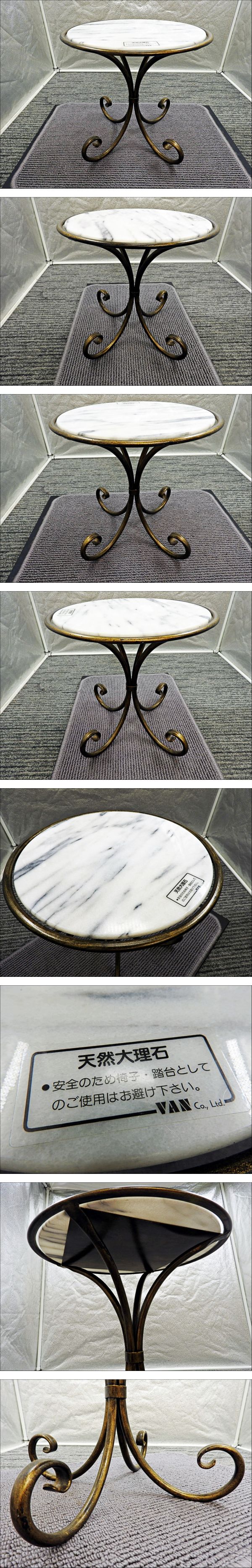天然大理石■サイドテーブル ミニテーブル 鉄脚 幅36.0cm×高さ33.8cm×奥行36.0cm■状態良好品「管理№KT906」 收藏