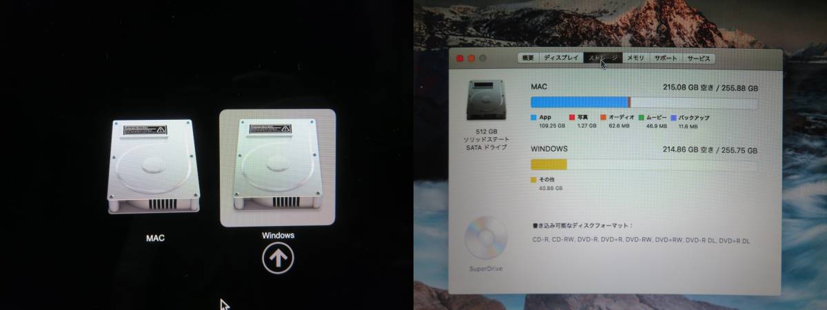 ◆ ストレージ SSD:爆速 SSD 512GB 大容量 ( パーティションはMac,Windowsそれぞれ SSD 256GBで分けてありますので、ご利用目的に応じて使い分けできます。)