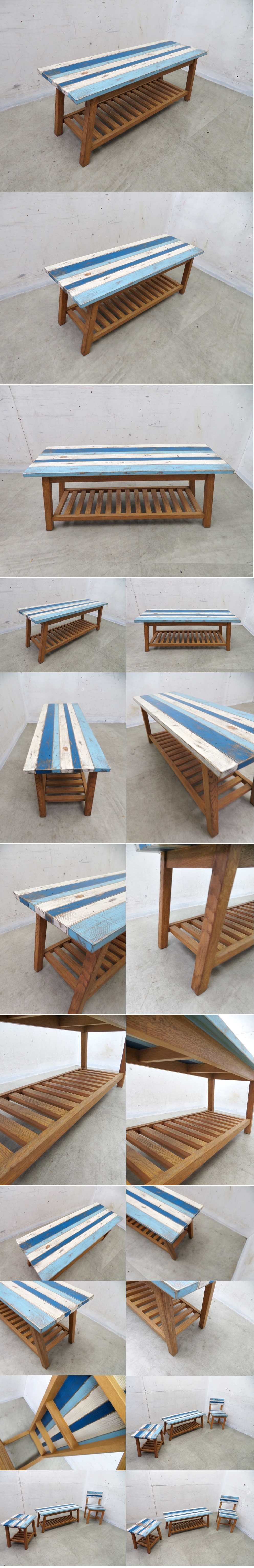 ■P045■展示品■西海岸■ペインティッド■モダンデザイン■ベンチ/サイドテーブル■シャビーシック■ウッド■ 收藏