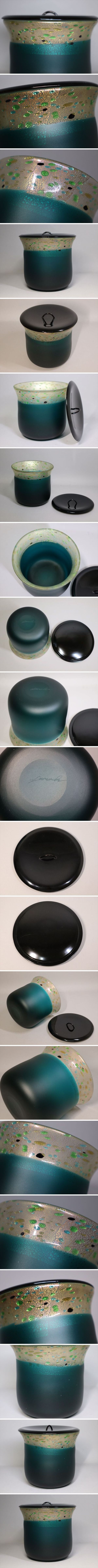 本物保証。状態良好です。現代ガラス工芸の名工 黒木国昭による金彩手吹きガラス水指です。繊細な美しさを感じさせる見事な仕上がりの作品です。箱はありません。細かい所までとても丁寧に造られています。