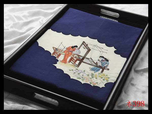 【ネ398】厳選美品 塩瀬 手描き 紺色地 気品豊かに 正絹高級美術名古屋帯 未使用 ◇検◇簪着物袋帯名古屋帯帯締め 收藏