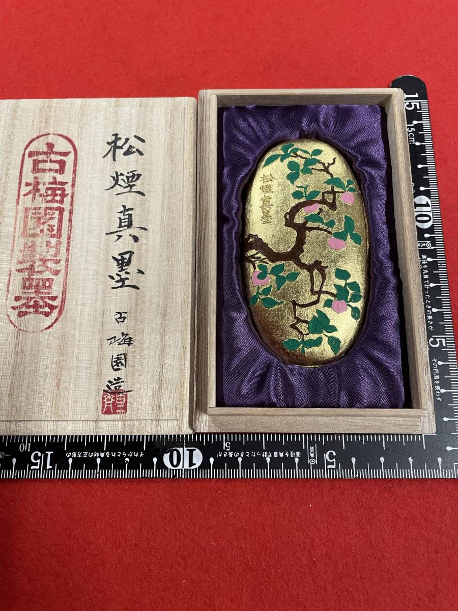 古梅園 書道墨2015年製造『金箔蒔 松煙真墨』高級松煙墨 稀少墨譜墨 未使用・新品保管品 收藏