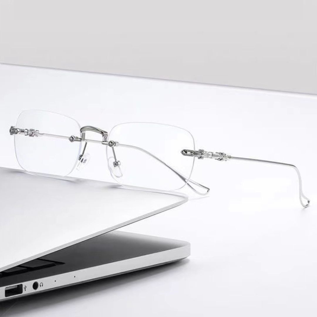 ブルーライトカットレンズ 伊達 メガネ サングラス リムレス 韓国 度なし 縁なし 眼鏡 シルバー PCメガネ 收藏