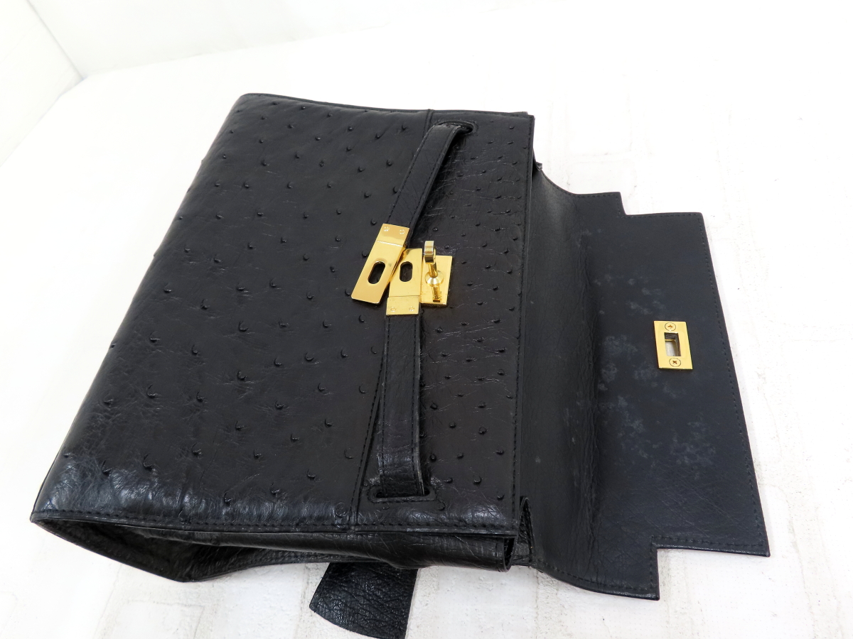 ◆超美品◆JRA 認定◆オーストリッチ 本 だちょう 革◆ハンド バッグ◆ブラック ゴールド金具◆ヴィンテージ◆日本製◆腕掛け◆A13896 收藏