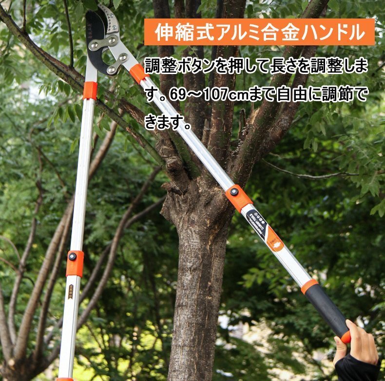 伸縮式 刈込鋏 強力 枝切りはさみ 刈込バサミ 5段階調節 刈り込みばさみ 剪定ばさみ SK5鋼 枝切ばさみ 軽量 アルミパイプ柄 女性 收藏