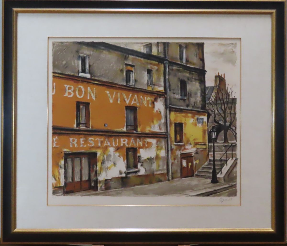 穂高「真作」文化勲章受章 荻須高徳 「オー・ボン・ヴィバアン」パリ5影 10号 限定リト 本人サイン 1976年 收藏