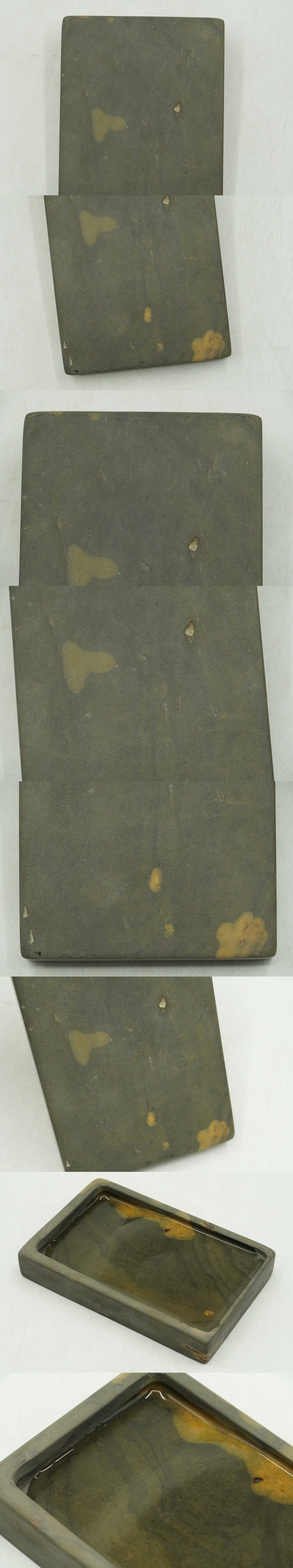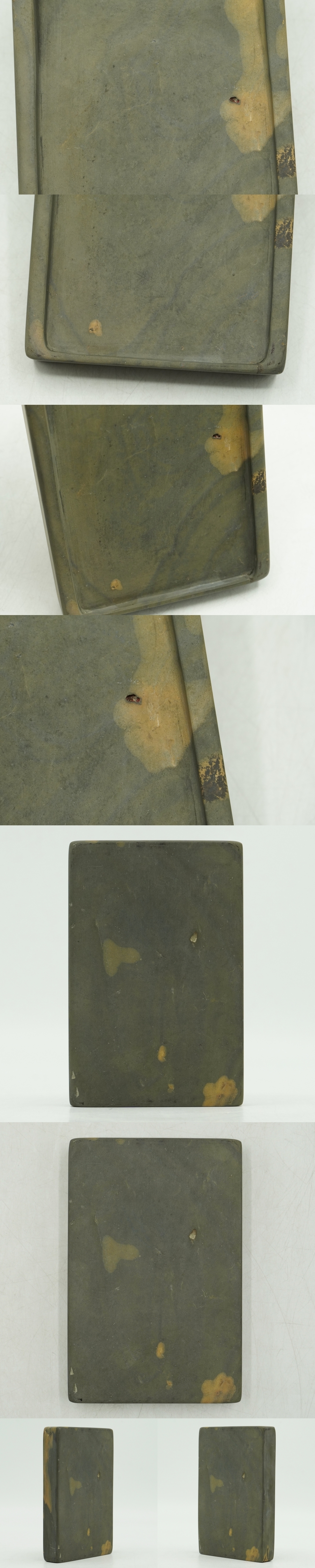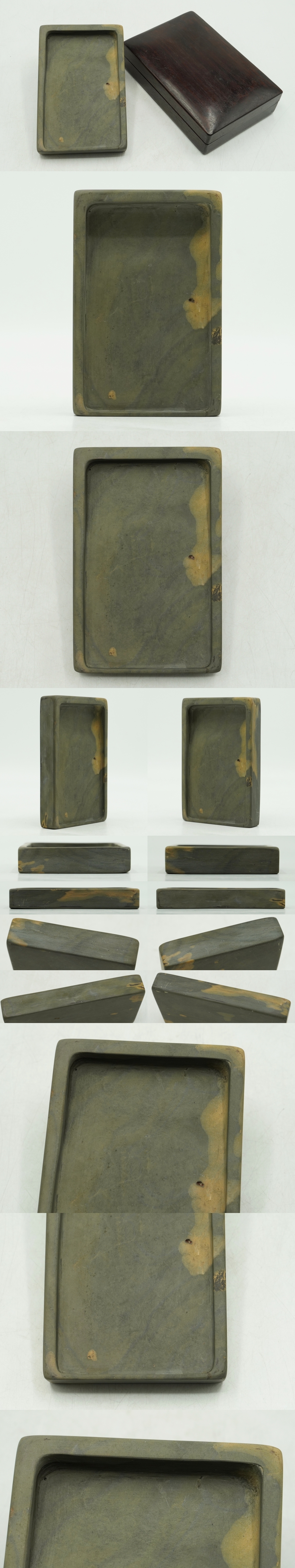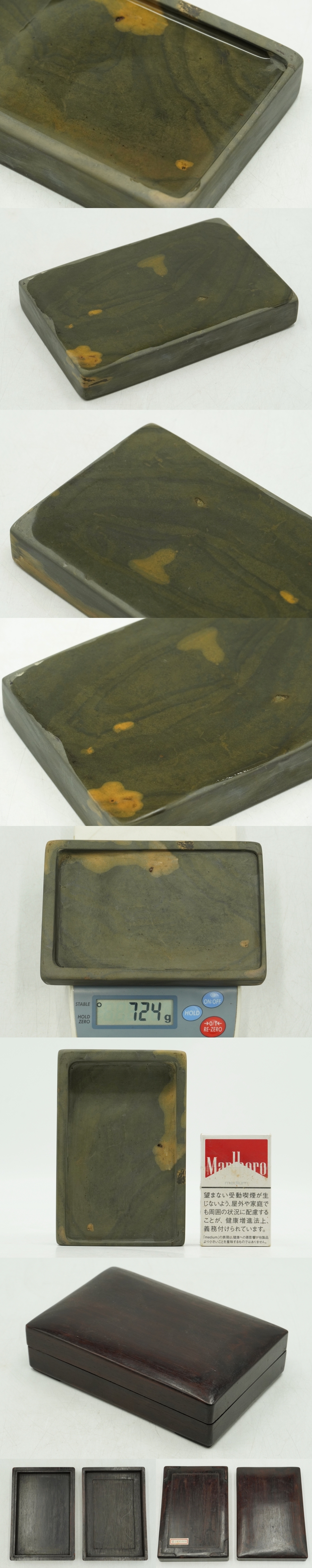 【楽久希】緑端渓 古硯 724g 共箱 石眼 水巌 水紋 金花紋 氷裂紋 緑石硯 端渓硯 石彫 老硯 唐硯 書道具 文房四宝 唐物 收藏