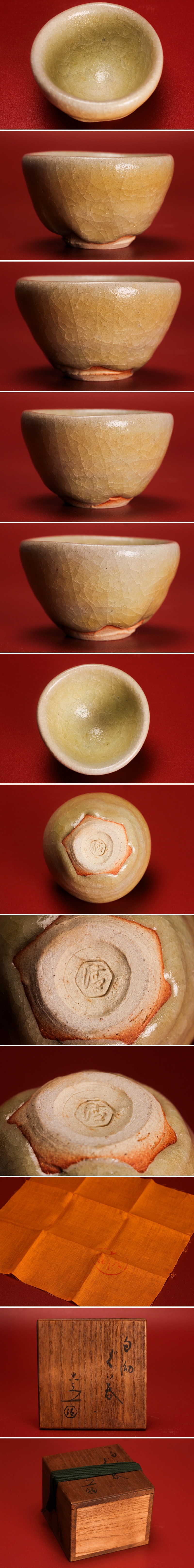 六代 清水六兵衛 白釉ぐい呑 共箱 共布 本物保証 收藏