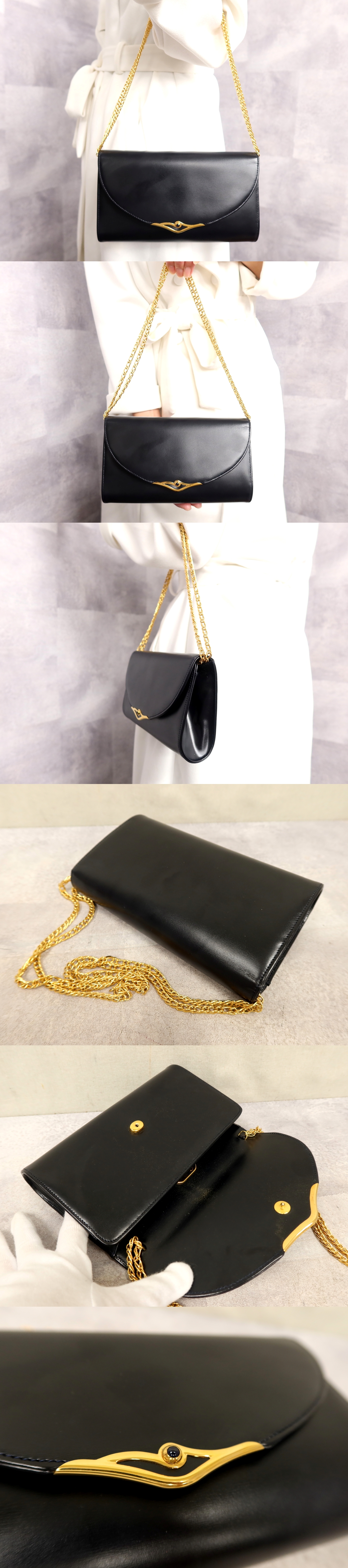 ●超美品●Cartier カルティエ●サファイアライン●カーフ レザー 本革●チェーン ハンド バッグ●ダークネイビー●ゴールド金具●Js62195 收藏
