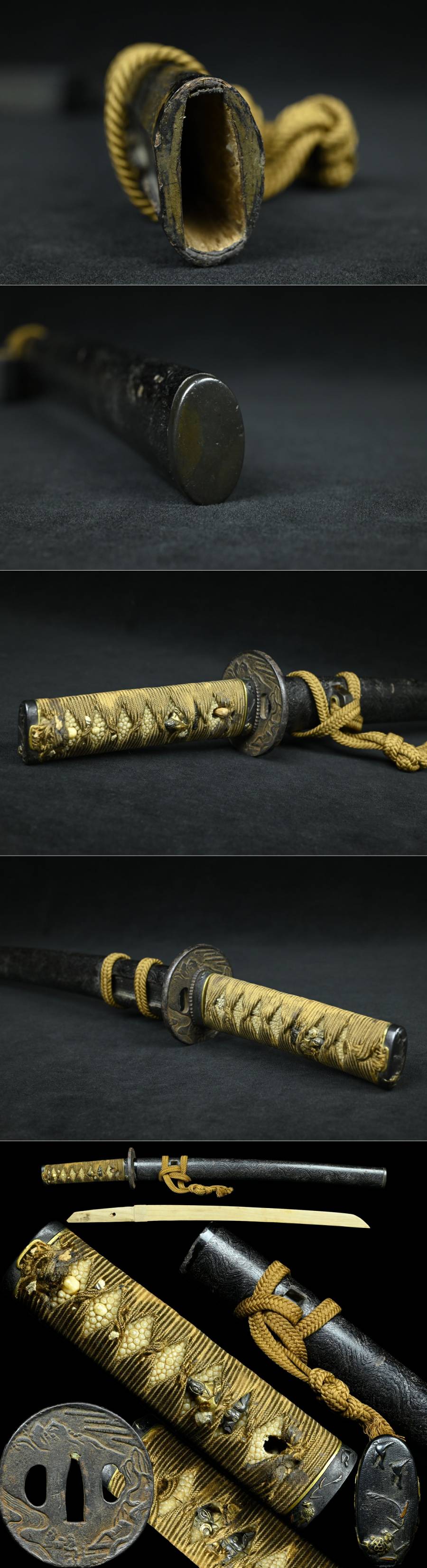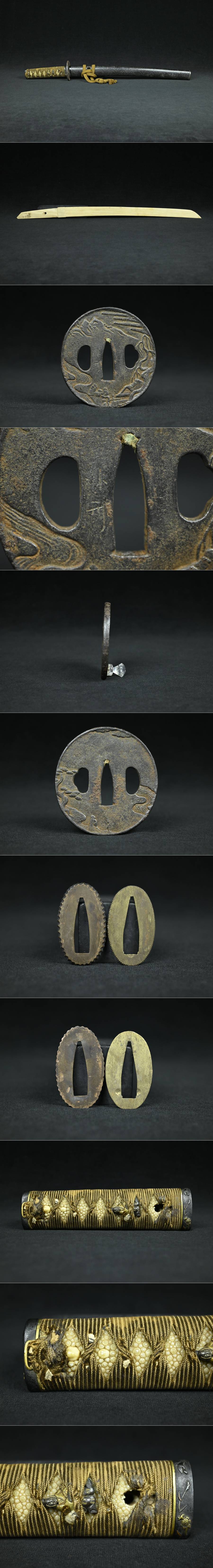 【昊】時代 在銘風景図鍔 人物図目貫 蓑亀鳥図縁頭 螺鈿変わり鞘 外装拵え 刀装具[LN57Ys] 收藏