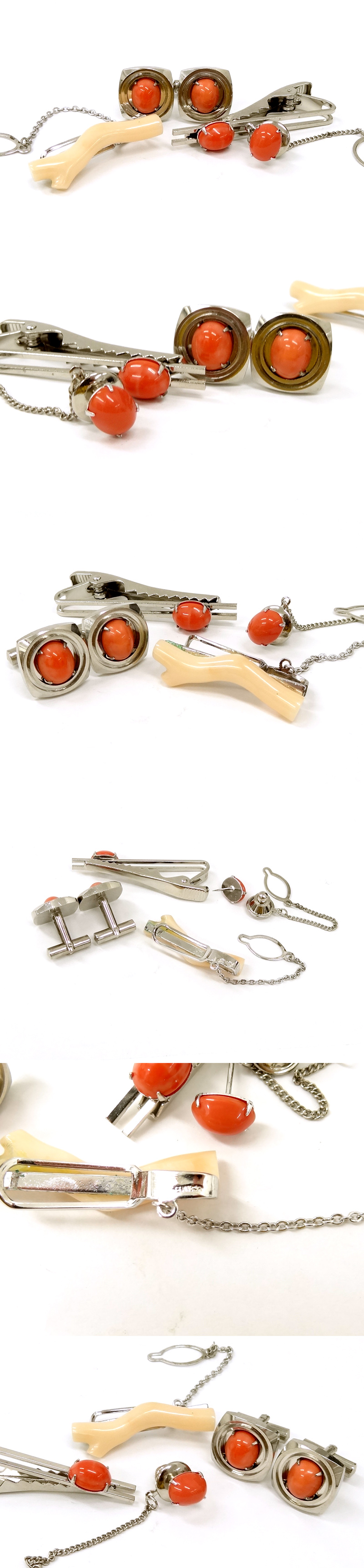【侍】コーラル珊瑚 サンゴ タイピン カフス タイタック 4点組 アクセサリー 20-693 收藏