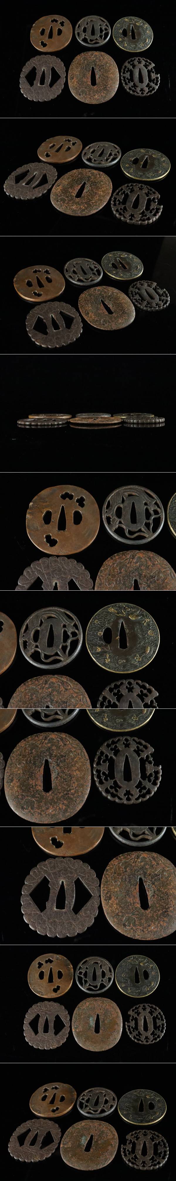【ASAHI】時代武具 鉄地 鍔 6点まとめ 透かし 金象嵌 丸型 小道具 刀装具 旧家蔵出品[71154①] 收藏