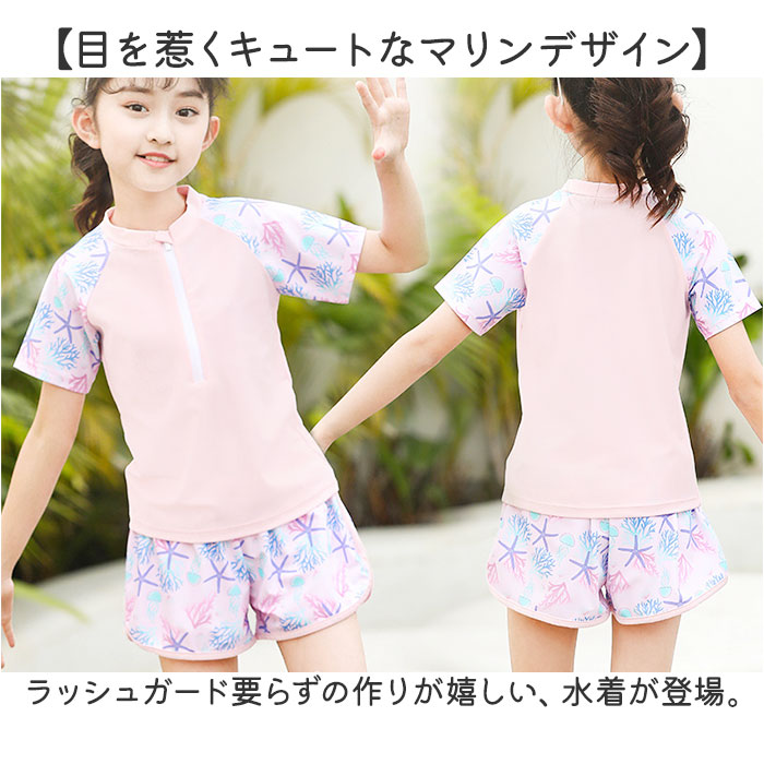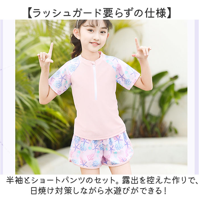 ☆ ピンク ☆ XL ☆ 水着 女の子 子供 半袖 上下セット かわいい kidw2223 水着 半袖 女の子 セパレート フィットネス水着 トランクス 收藏