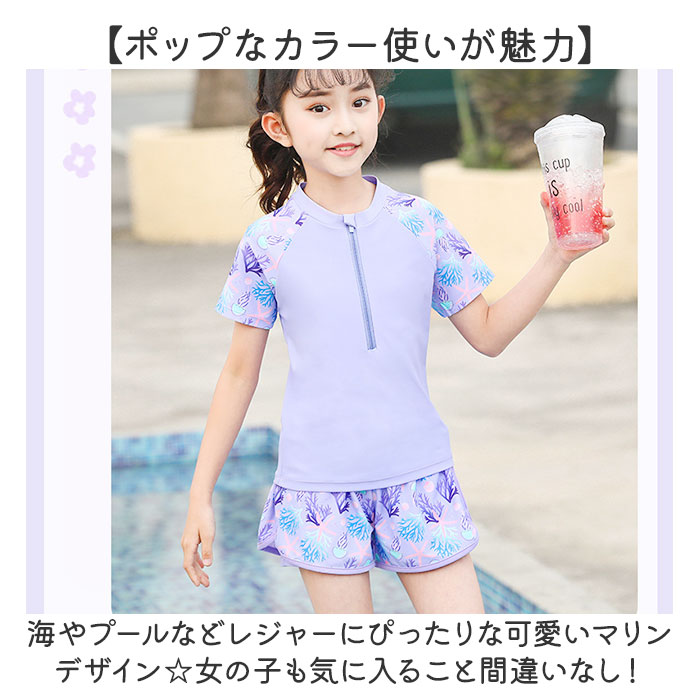 | 商品名 | 水着 女の子 子供 半袖 上下セット かわいい kidw2223 |