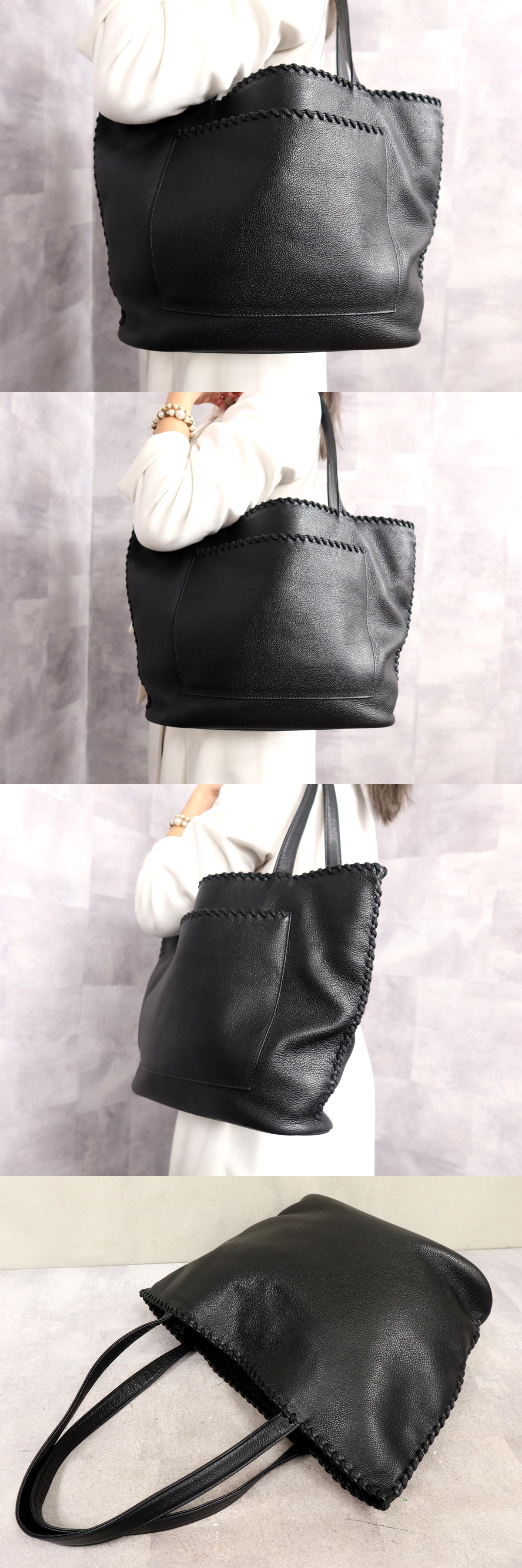 ●超美品●YSL Yves Saint-Laurent イヴ・サンローラン●カーフ レザー 本革●トート バッグ●黒●A4 収納●書類 かばん●肩掛け●Js63685 收藏