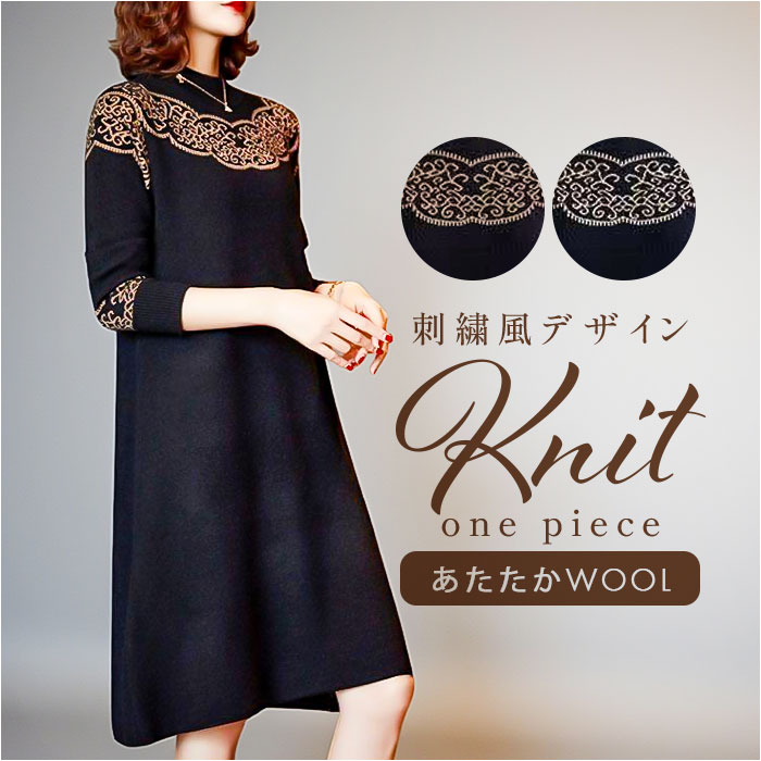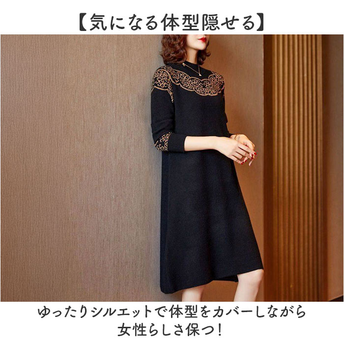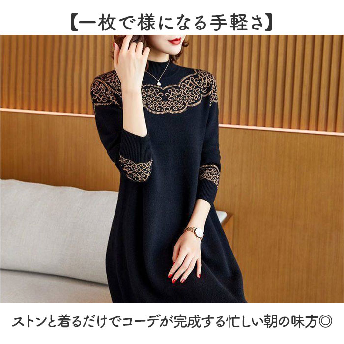 ☆ ブラック×ホワイト ☆ Mサイズ ☆ ニットワンピース 体型カバー ニットワンピース レディース ニットワンピ ワンピース 長袖 ニット 收藏