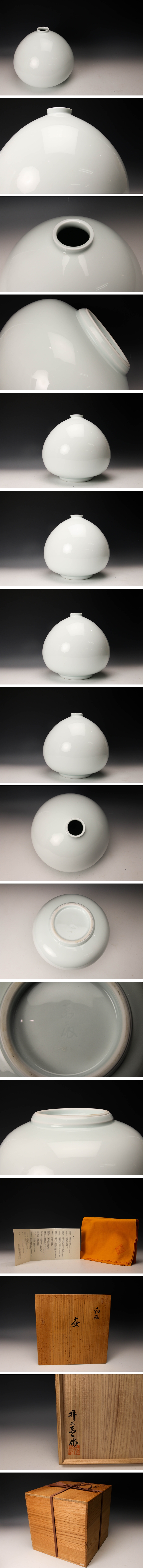 【佳香】人間国宝 井上萬二 本人作 白磁壷 共箱 共布 栞 本物保証 收藏
