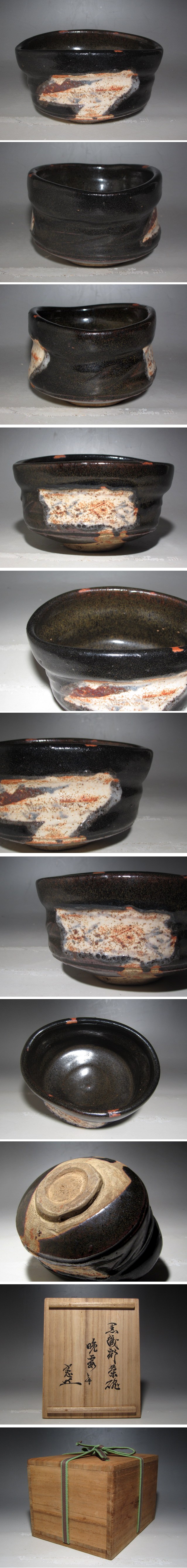 時代 黒織部茶碗「晩霞」裏千家玄々斎花押逸品☆c181 收藏