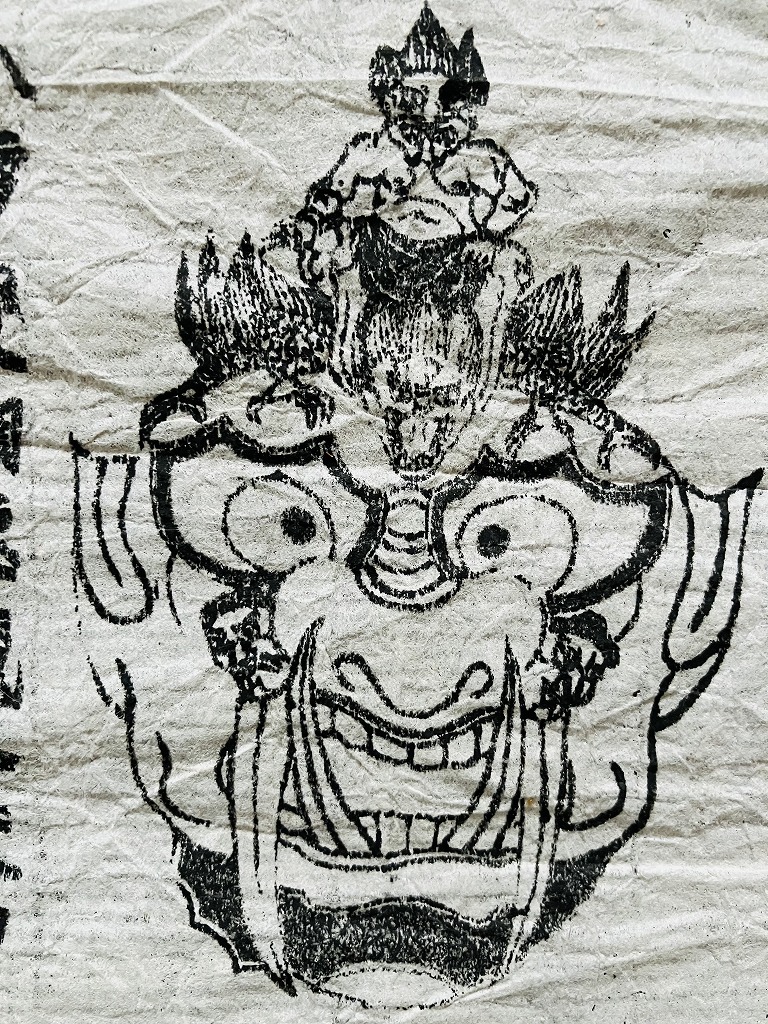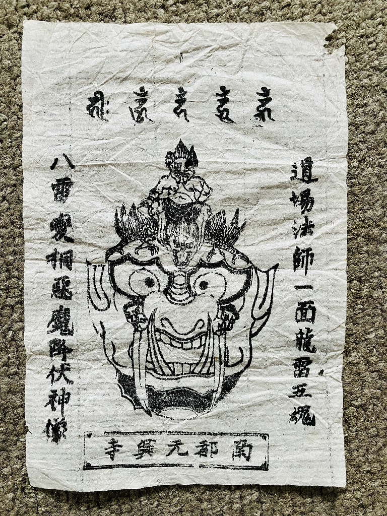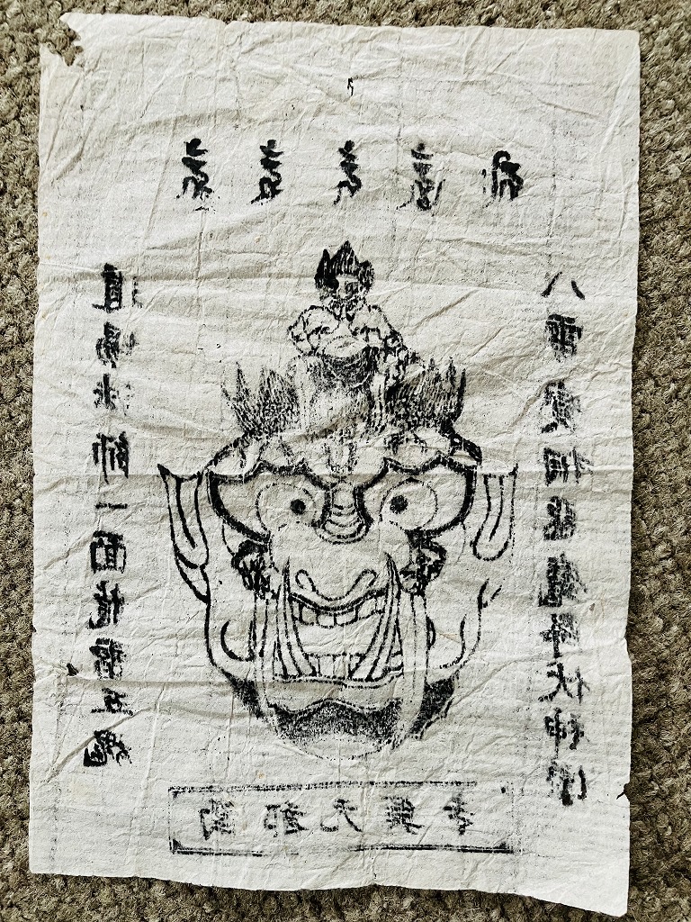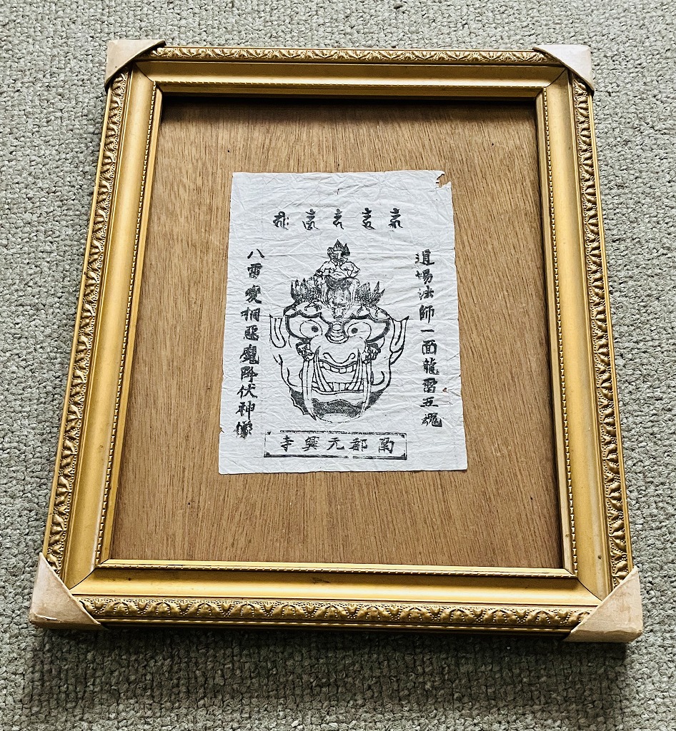 ★【木版摺り/護符・霊符】 古書 古文書 資料 《南都・元興寺》 『道場法師一面龍雷五魂・八雷変相悪魔降伏神像』 額入★ 收藏