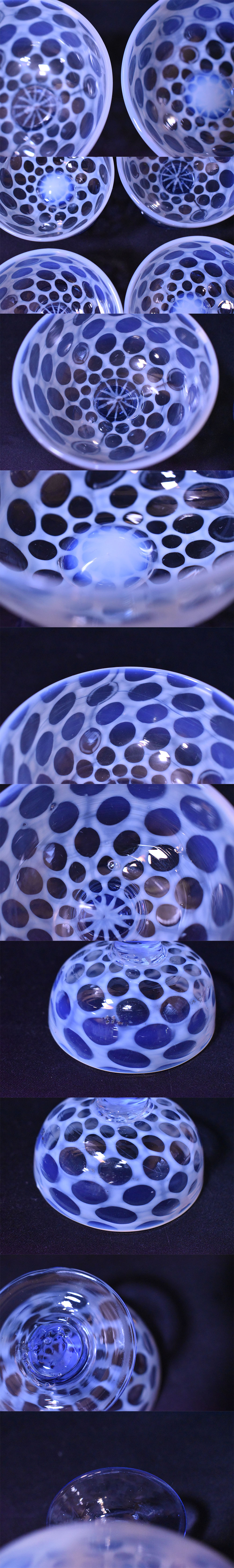 ●氷グラス/氷コップ/和ガラス/ガラス器/なつめ型/大正ロマン/ノスタルジック/乳白水玉模様/氷菓/かき氷/6客セット/U26OT113 收藏