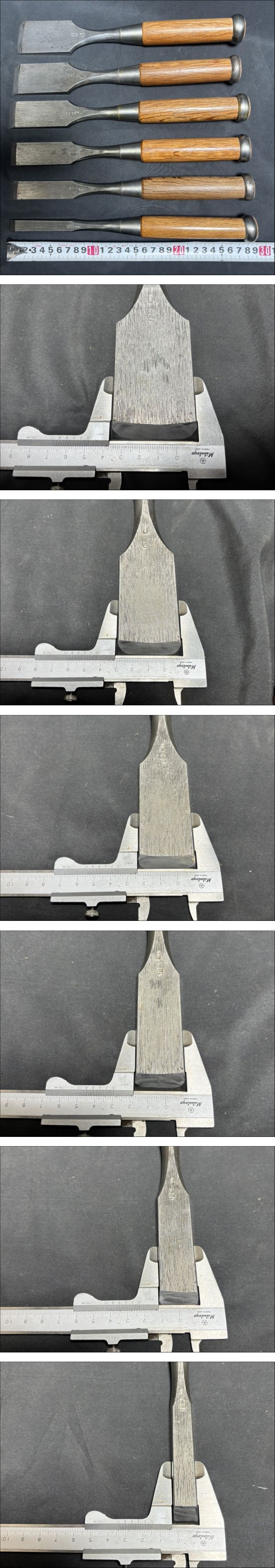 | 製品情報 | ダメ切り 6本組 鑿 三代助丸作 【碓氷金三郎氏作】 刃幅: 48mm/42mm/36mm/30mm/24mm/18mm ※製品情報については外観からの判断となりますので、参考程度にお考えください。 |