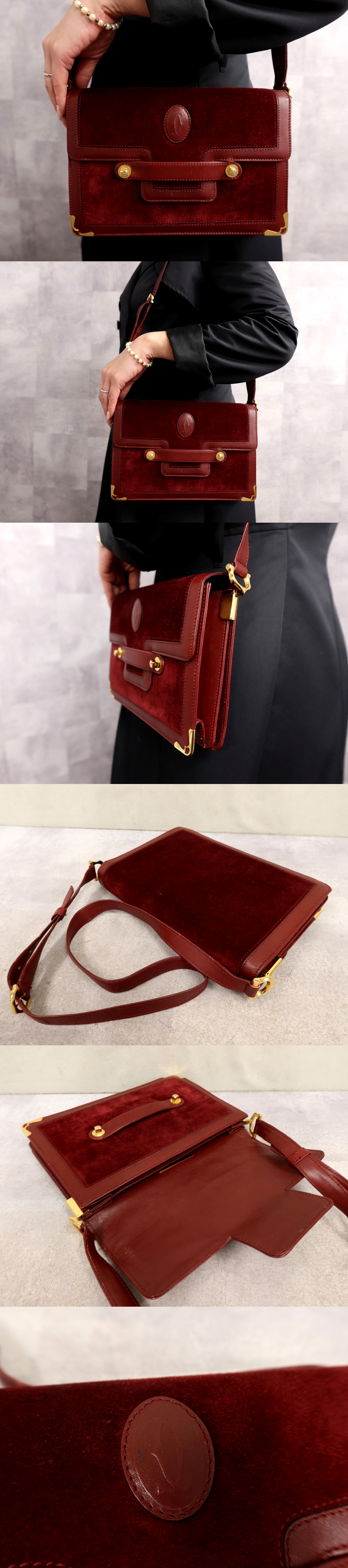 ●超美品●Cartier カルティエ●マスト●スエード カーフ レザー 本革●ショルダー バッグ●ボルドー●G金具●ヴィンテージ●収納●Js65158 收藏